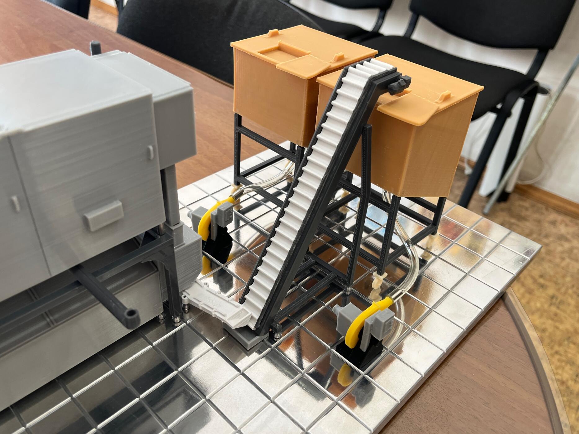 Такая миниатюра позволяет не только демонстрировать технологию на выставках, но и использовать её как учебный и презентационный инструмент — для обсуждения компоновки, модернизации или проектирования новых линий.