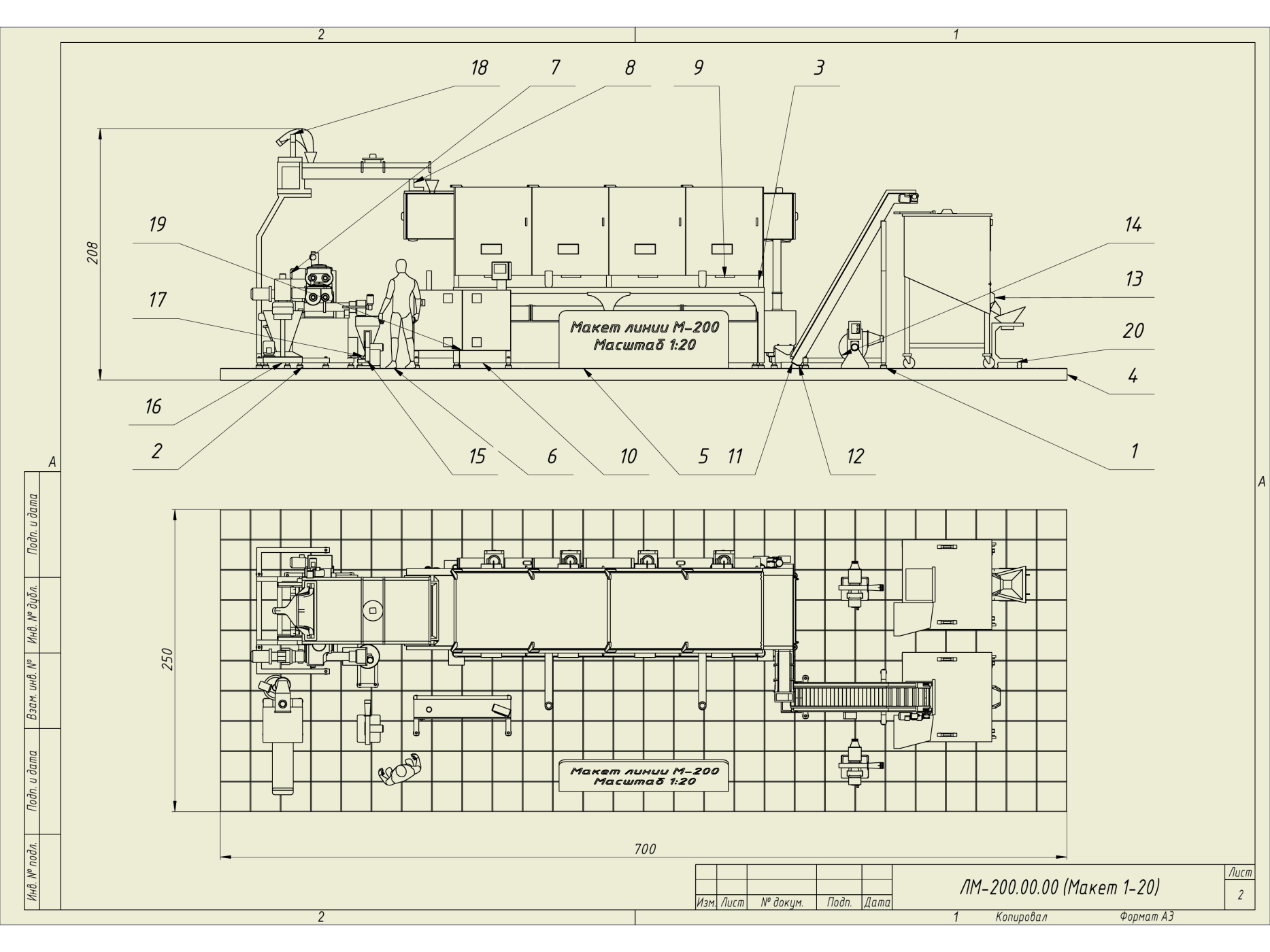 Для масштаба добавлена фигурка человека — она помогает мгновенно оценить реальные размеры оборудования и показывает, что вся линия обслуживается всего одним оператором.