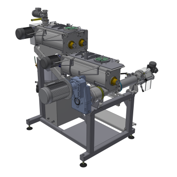 пресс, сушилку, охладитель, бункеры-стабилизаторы с системой досушки, мукопросеиватель, пневмотранспорт, конвейеры и пульт управления.