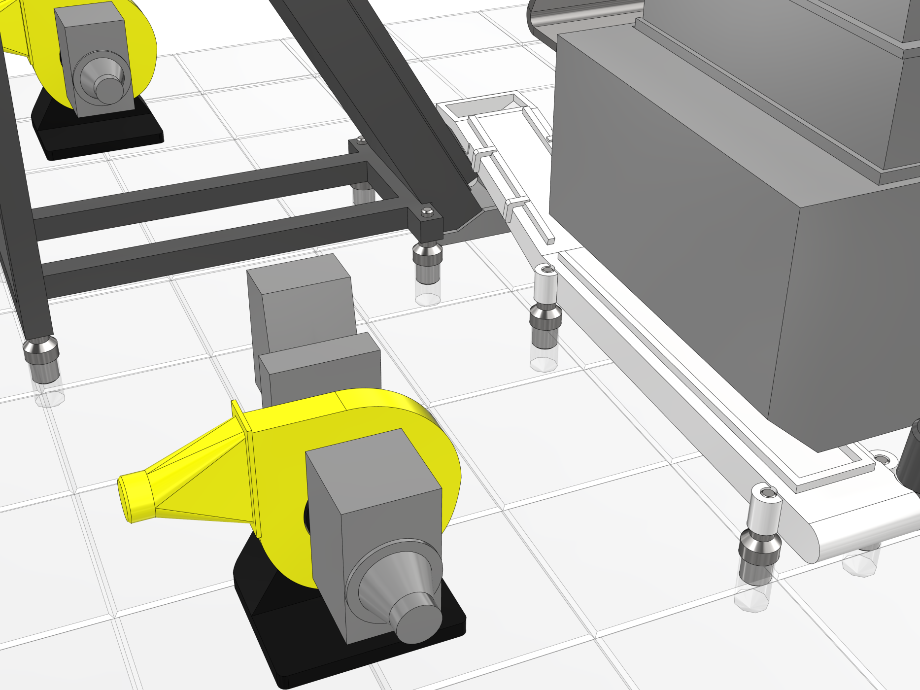 Для обозначения пневмотранспорта и воздуховодов системы досушки использовалась прозрачная полиуретановая трубка — лёгкая, гибкая и визуально достоверная.