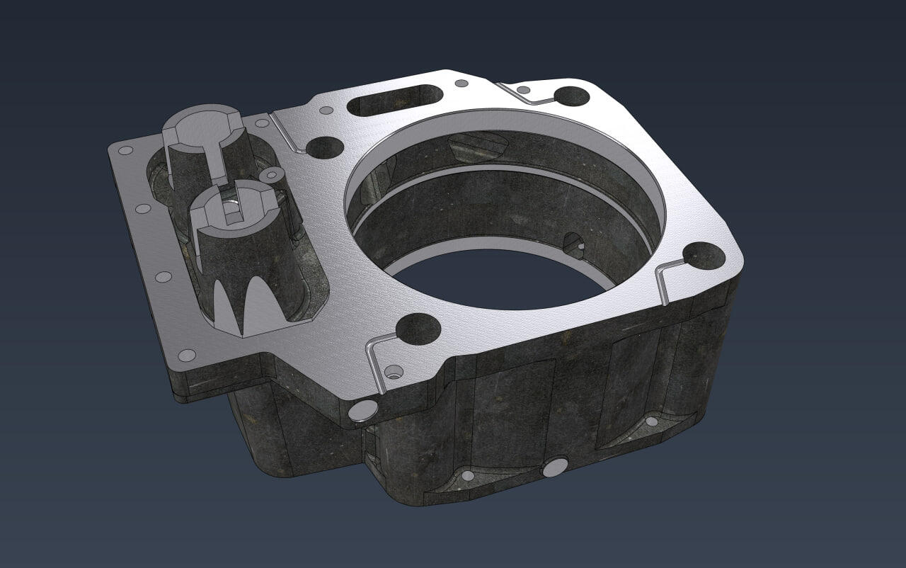 Заказчику требовалась точная твердотельная CAD‑модель крупногабаритной литой рубашки охлаждения (около 500 × 400 × 300 мм, масса ~75 кг) для подготовки УП для ЧПУ‑станков. Важными были только те группы поверхностей, которые участвуют в механообработке; литейные уклоны можно было не учитывать — главное, чтобы модель обеспечивала корректную геометрию и надёжную базу под производство.